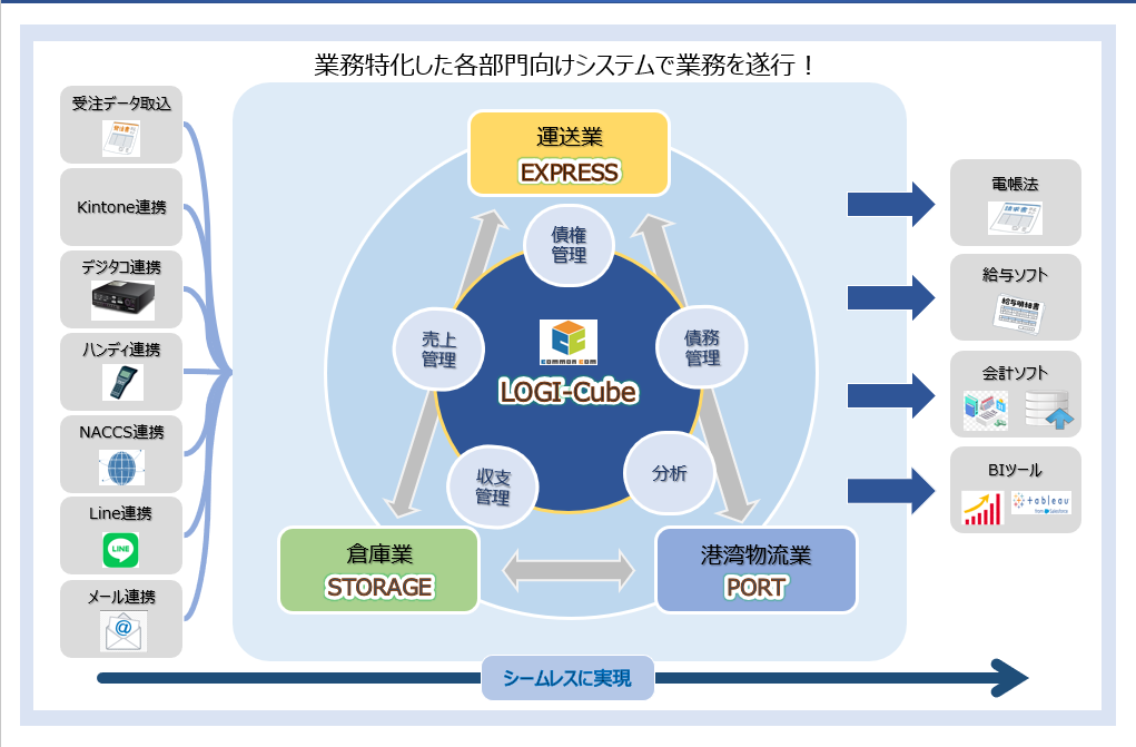 LOGI-Cubeは、業務の構造と情報をシームレスにつなぎ、全体最適な物流オペレーションへと導きます。